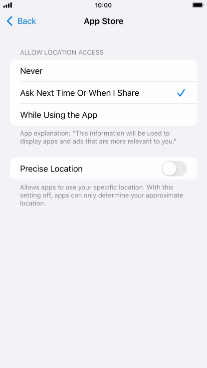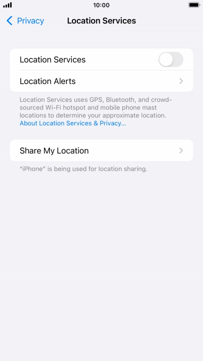 Press the indicator next to "Location Services" to turn the function on or off.