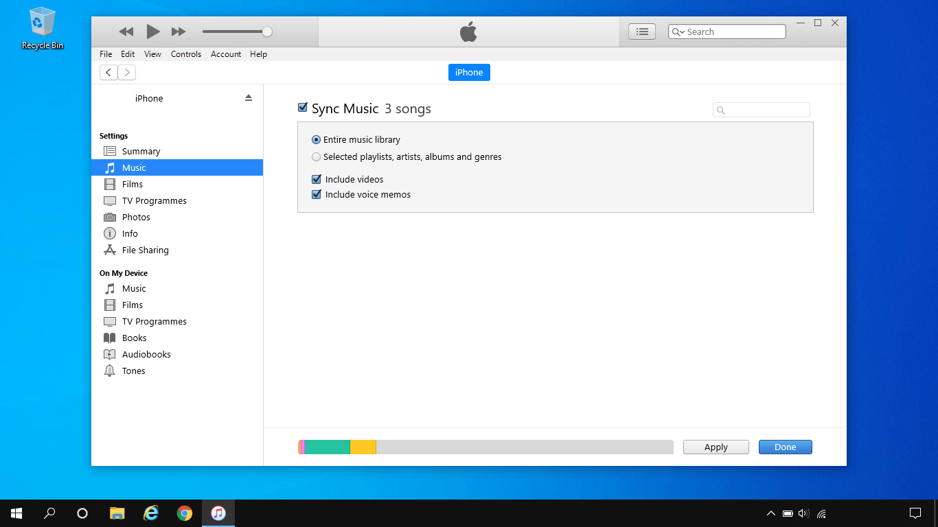 Depending on your settings in iTunes, the transfer may start automatically. To manually start the transfer, click the iPhone icon.