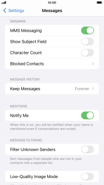 Press the indicator next to "MMS Messaging" to turn on the function.