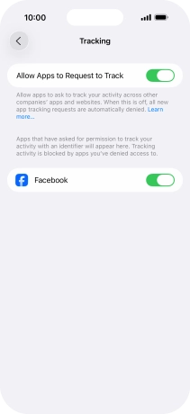 Press the indicators next to the required apps to turn tracking request for each app on or off.