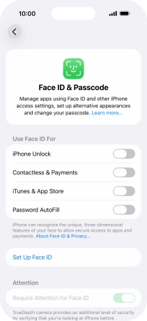 You can use your Face ID to turn off the phone lock code, allow access to apps and authorise payments.