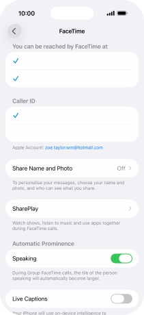 Press the required setting below "You can be reached by FaceTime at".