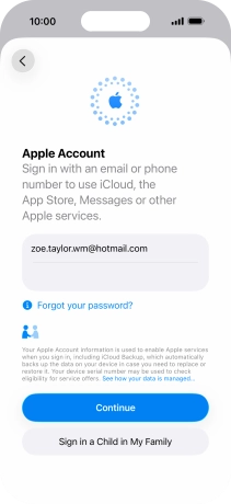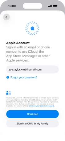 An Apple Account gives you access to a number of services on your phone such as iCloud, App Store and iTunes. To activate an Apple Account on your phone you need to set up your phone for internet.