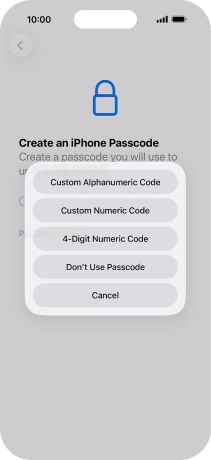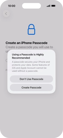 Follow the instructions on the screen to turn on use of phone lock code or press Don't Use Passcode.