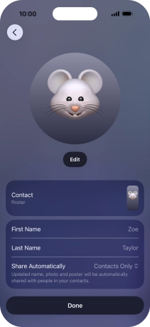 Press the name fields and follow the instructions on the screen to edit your name on the Contact Poster.