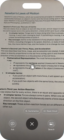 To use visual intelligence on a text, take a picture of the text, press the required setting and follow the instructions on the screen to use the function.