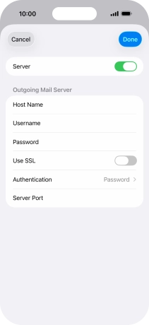 Press Password and key in the password for your email account. Please note that if you're using Vodafone's outgoing server, leave the password field empty.
