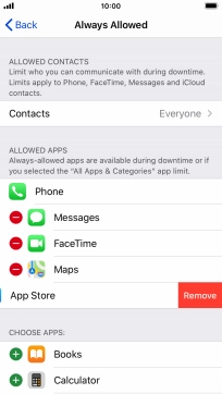 Press the remove icon next to the required app to remove it from the list of allowed apps during Downtime.