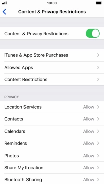 Press the indicator next to "Content & Privacy Restrictions" and follow the instructions on the screen to select settings for content and privacy restrictions.