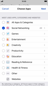 4. Select time limits for app usage
