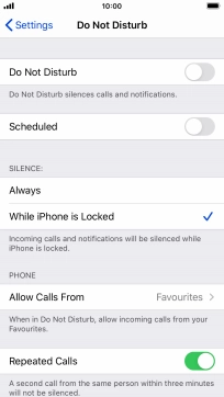 Press the required setting to select which contacts can call you even though Do Not Disturb is turned on.
