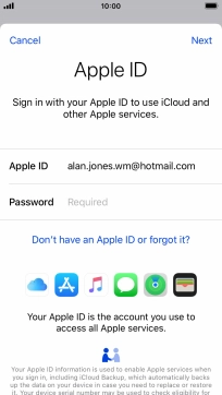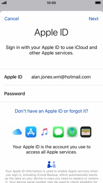 If you don t have an Apple ID, press Don't have an Apple ID or forgot it? and follow the instructions on the screen to create an Apple ID.