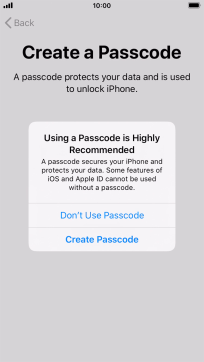 Follow the instructions on the screen to turn on use of phone lock code or press Don't Use Passcode.
