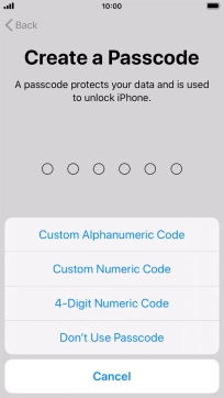 Follow the instructions on the screen to turn on use of phone lock code or press Don't Use Passcode.