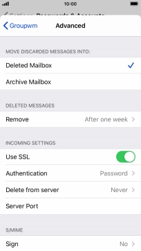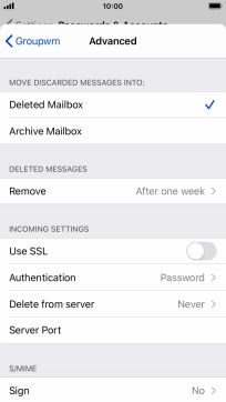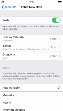 Press the required email account and follow the instructions on the screen to select settings for the specific account.