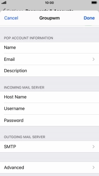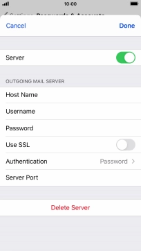 Press Password and key in the password for your email account. Please note that if you're using Vodafone's outgoing server, leave the password field empty.