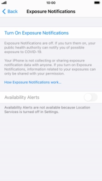 Info: To turn on Exposure Notifications again, open the exposure app and follow the instructions on the screen to turn on the function.