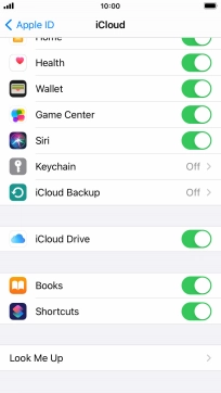 Press the indicator next to "iCloud Drive" to turn file synchronisation on or off.