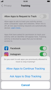 Press the indicator next to "Allow Apps to Request to Track" to turn the function on or off.