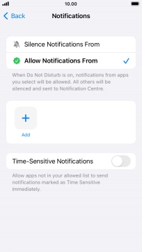 Press the indicator next to "Time-Sensitive Notifications" to turn display of timed notifications on or off when Do Not Disturb is turned on.