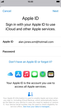 If you don t have an Apple ID, press Don't have an Apple ID or forgot it? and follow the instructions on the screen to create an Apple ID.