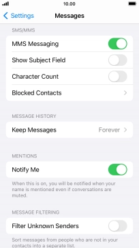 Press the indicator next to "MMS Messaging" to turn on the function.