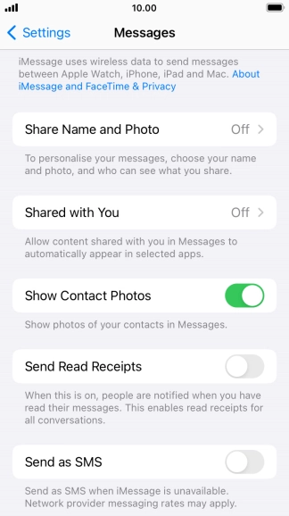 Press the indicator next to "Send as SMS" to turn the function on or off.