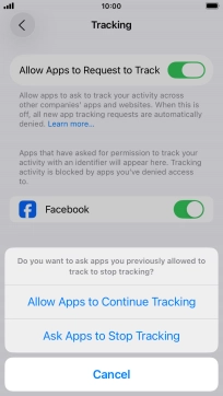 Press the indicator next to "Allow Apps to Request to Track" to turn the function on or off.
