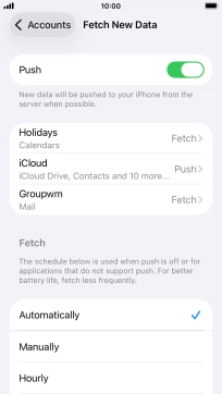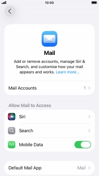 Press the required email account and follow the instructions on the screen to select settings for the specific account.