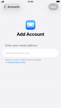 If this screen is displayed, you email account has been recognised and set up automatically. Follow the instructions on the screen to key in more information and finish setting up your email account.