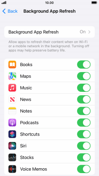Select settings for background refresh of apps on your Apple iPhone SE (2022) iOS 15.4