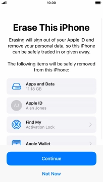 Key in the password for your Apple ID and press Erase iPhone. Wait a moment while the factory default settings are restored. Follow the instructions on the screen to set up your phone and prepare it for use.