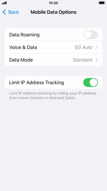 Press the indicator next to "Data Roaming" to turn the function on or off.