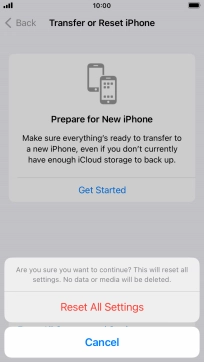 Press Reset All Settings. Wait a moment while the factory default settings are restored. Follow the instructions on the screen to set up your phone and prepare it for use.