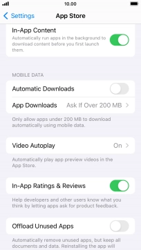 Press the indicator next to "Automatic Downloads" to turn the function on or off.