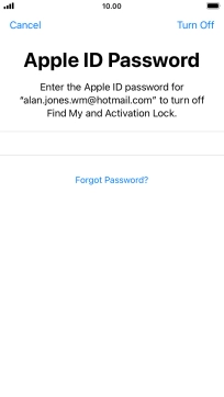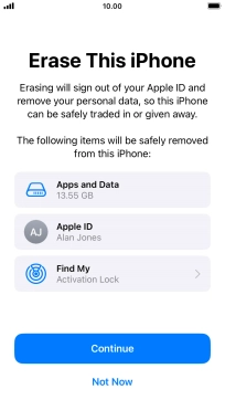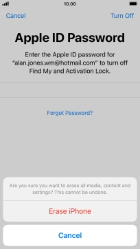 Key in the password for your Apple ID and press Erase iPhone. Wait a moment while the factory default settings are restored. Follow the instructions on the screen to set up your phone and prepare it for use.