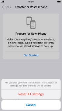 Press Reset All Settings. Wait a moment while the factory default settings are restored. Follow the instructions on the screen to set up your phone and prepare it for use.