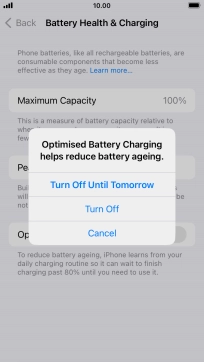 Press the indicator next to "Optimised Battery Charging" to turn the function on or off.