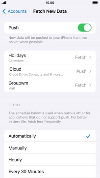 Press the required email account and follow the instructions on the screen to select settings for the specific account.