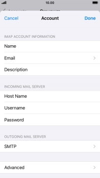 Press Host Name and key in the name of your email provider's outgoing server. Please note that if you can't send email messages when using your email provider's outgoing server, key in smtp.vodafone.net.au (Vodafone's outgoing server).