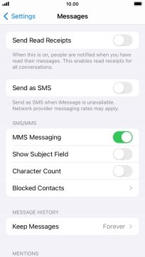 Press the indicator next to "MMS Messaging" to turn on the function.