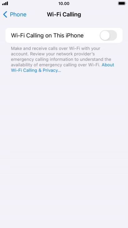 Press the indicator next to "Wi-Fi Calling on This iPhone" to turn the function on or off.
