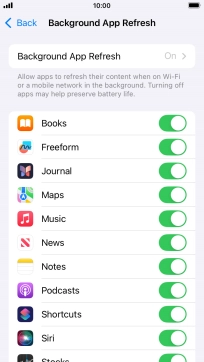 To turn off background refresh of apps, press Off.