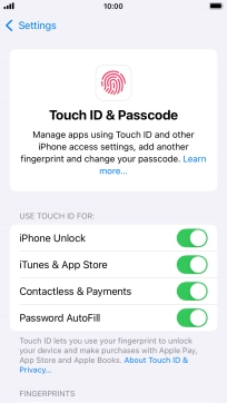 You can set your phone to use your fingerprint as phone lock code or to authorise iTunes and App Store purchases. To use Touch ID, you need to turn on the phone lock code.