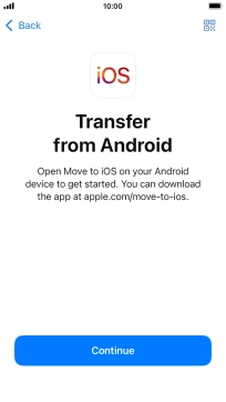 To transfer content to your phone, you need to install the app "Move to iOS" on the Android phone. When the app is installed, press Continue.