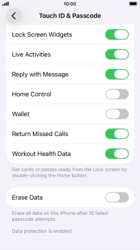 Press the indicator next to "Erase Data" to turn the function on or off.