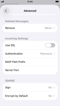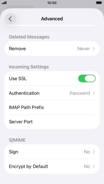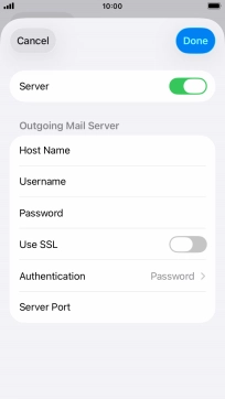 Press the indicator next to "Use SSL" to turn the function on or off. Please note that if you're using Vodafone's outgoing server, turn off SMTP authentication and leave the username and password fields empty.