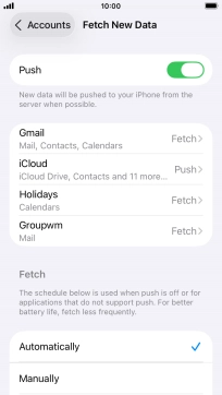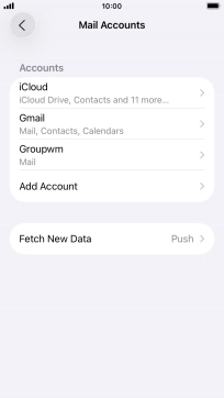Press the required email account and follow the instructions on the screen to select settings for the specific account.