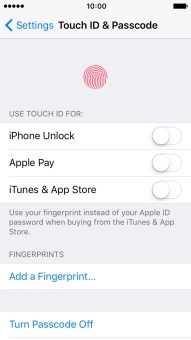 Turn use of phone lock code on your Apple iPhone SE iOS 10.0 on or off