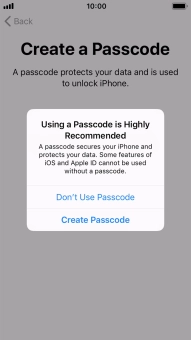 Follow the instructions on the screen to turn on use of phone lock code or press Don't Use Passcode.